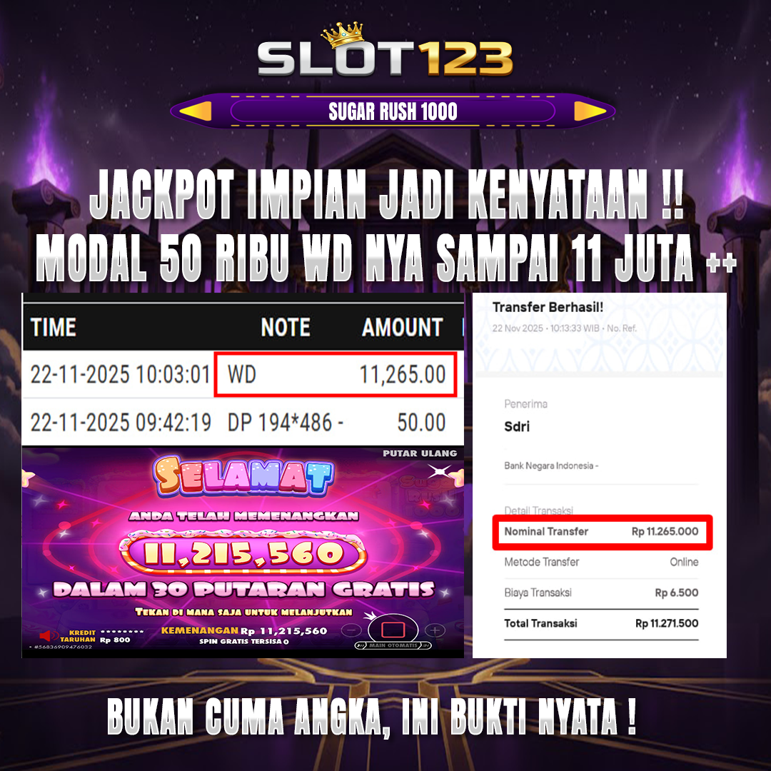 SLOT123 menghadirkan game jackpot vip yang di lengkapi fitur khusus new member hanya dengan modal deposit 50k dijamin akan withdraw 11++ juta malam ini.